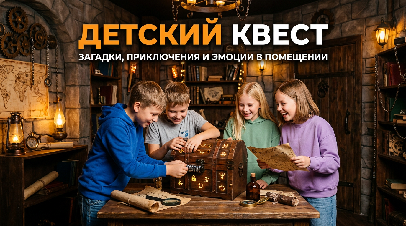 Для семейных команд важна не только интересная история, но и понятные правила, безопасная механика и комфортный темп. Детские квесты обычно строятся на ярком сюжете, простых головоломках и визуальных эффектах, которые легко вовлекают ребенка в игру.